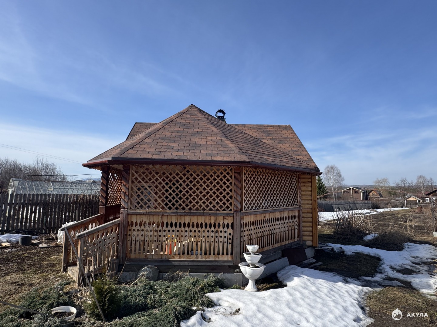 На ухоженном земельном участке, расположены:Новая бревенчатая БАНЯ (размер 6.0*4.0+ веранда. Парная обшита липой, моечное отделение- осина. Печь - сложена из кирпича.Теплица размер 12 м. * 4.1 м., домиком из поликарбоната.Посажены груша, яблони, кустарники, цветы.