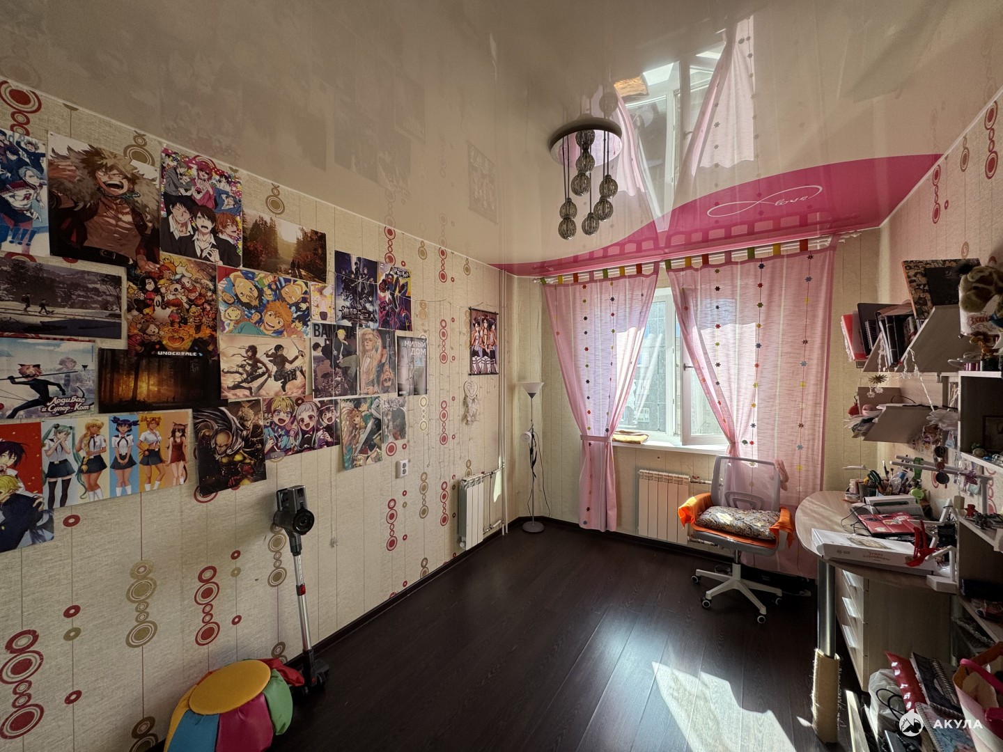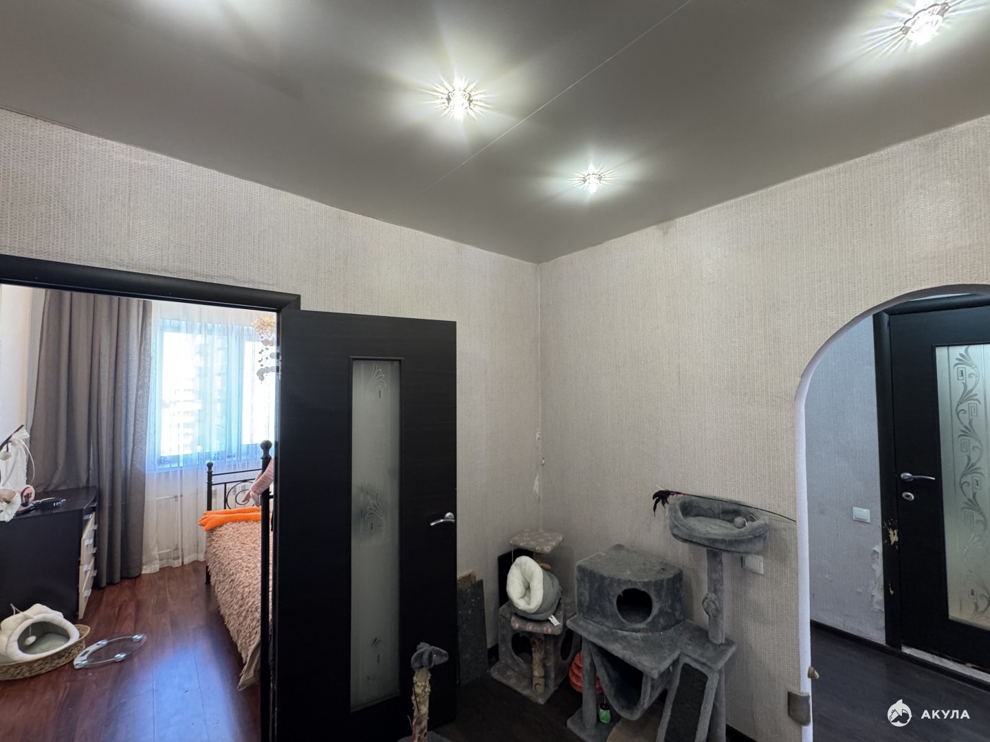 Высота потолков - 2.7 м. Окна ПВХ. Качественная металлическая дверь. Потолки частично натяжные (глянцевые). на полу ламинат.