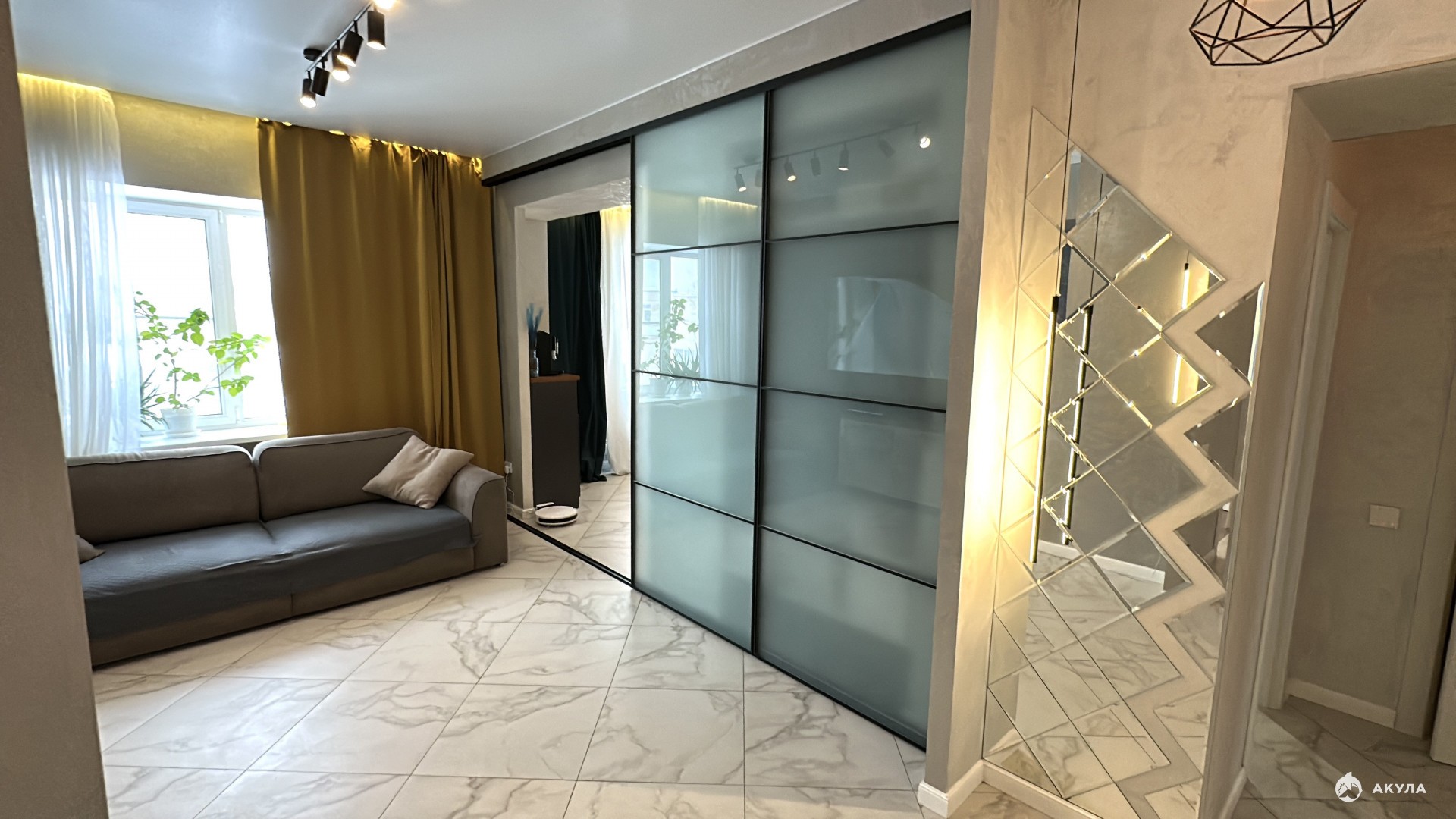 В квартире выполнен качественный дизайнерский ремонт, теплые электрические полы, кондиционер, все комнаты раздельно, встроенная мебель и кухня, посудомойка, остаются при продаже. Один собственник.